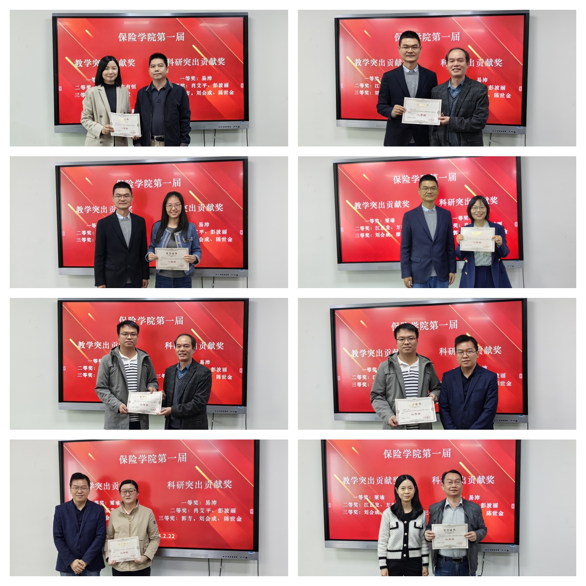 陈辉院长指出,设置教学、科研突出贡献奖是为了更好地服务于我校审核评估、更名大学、博士授权等战略目标的实现,助力我院保险学国家级一流专业和保险专业硕士点建设,希望我院教师秉承“科研与教学一起抓,两个拳头都要硬”的观念,将科研成果和研究体会融入课堂,为学院高质量发展贡献力量。