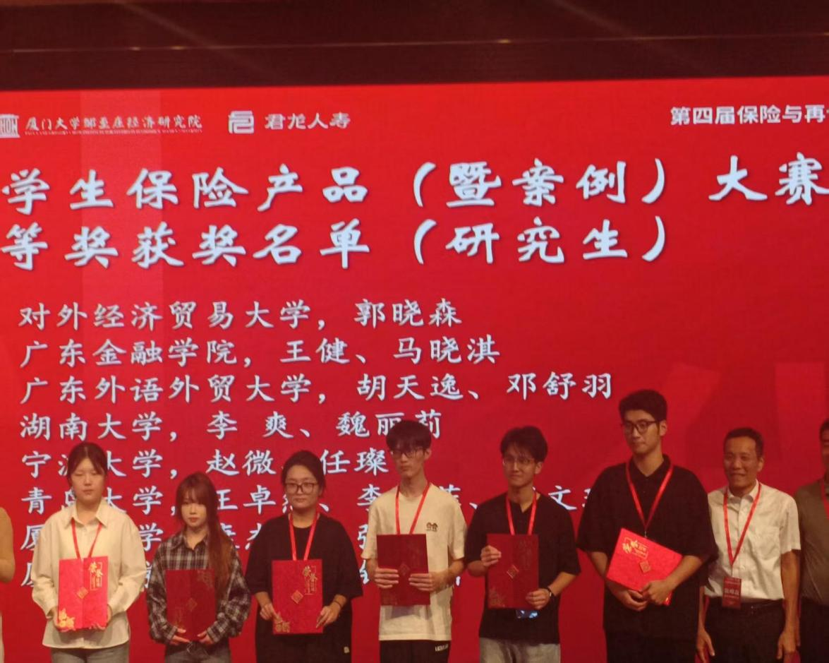 2025年11月7-9日,第四届“保险与再保险论坛”在厦门大学成功召开,我院师生受邀参加了此次论坛的多个环节,一名研究生在分论坛上宣读论文,多名学生在“学生作品设计(暨案例分析)大赛”中获奖。本次论坛由厦门大学经济学院、厦门大学王亚南经济研究院、厦门大学邹至庄经济研究院与君龙人寿保险有限公司联合主办,厦门大学经济学院金融系承办,厦门大学金融文化研究院、上海财经大学滴水湖高级金融学院再保险创新研究中心协办,以“人工智能+时代的保险与再保险创新发展”为核心主题,聚焦人工智能技术演进背景下(再)保险行业的创新发展与风险防控,旨在探索AI时代保险业高质量发展新路径,推动保险精算学科交叉融合与产学研协同创新。