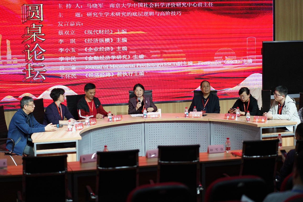 随后的圆桌论坛以“研究生学术研究的底层逻辑与高阶技巧”为主题,由南京大学中国社会科学评价研究中心原主任马晓军教授主持,《现代财经》主编蔡双立、《经济经纬》前执行主编王怀民、《经济纵横》主编李琪、Economics(SSCI)主编吕备、《企业经济》主编李小玉、《金融经济学研究》编辑部金山副教授依次发言。