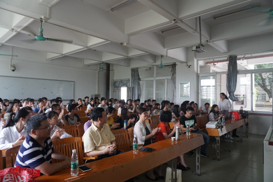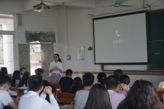 杨英主管以诙谐的方式开场,为在场学生详细介绍了东莞的区位优势、发展潜力以及东莞人保财险公司的出色背景与环境,深入诠释了“菁星计划”的具体内涵,并对职能、技术、业务、运营四个方向的岗位要求展开描述。