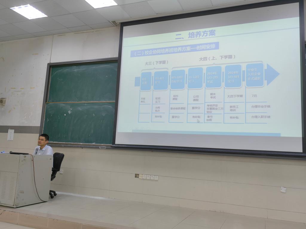接着,陈辉院长从组班情况、时间安排、培养特色、管理制度四个方面讲述省人保的培养方案,有助于同学们更好地克服困惑,了解企业文化与氛围。他特别指出,人保的人才培养方案极具特色,教学团队实力雄厚,不仅有专业知识的传授,更有实操技能的培训,有助于同学们提高实操能力,掌握实用技能。此外,陈院长还讲解了此次“校企协同培养班”的岗位实习与实践安排及就业地区分布的情况,积极引导同学们在求职过程中做好自身定位,坦诚面对从基层工作干起的社会现实,将个人需求与社会需要统一起来,走上正确的职业发展道路。