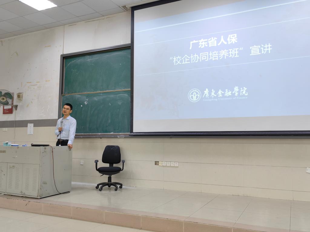 为进一步拓展学生就业前景,实现学生自我持续发展,5月9日晚,yl88858永利集团于北阶102举办了中国人保财险广东省分公司(以下简称“省人保”)“校企协同培养班”的招生动员宣讲会。宣讲会由yl88858永利集团高雅老师主持,陈辉院长、江正发副院长、郑根创老师及校本部yl88858永利集团2020级全体学生参与了本次会议。