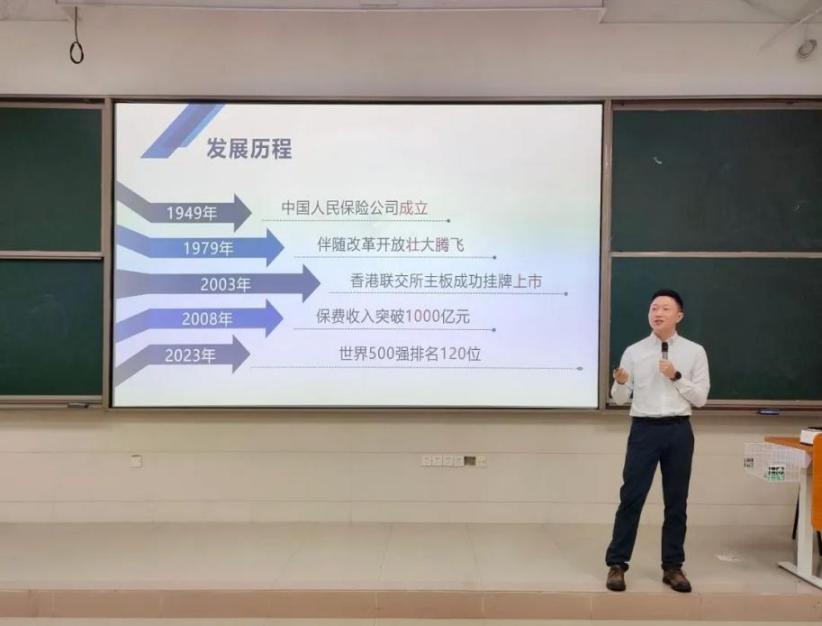 此外,刘老师对本届“人保班”的特色——即“商非销售专班”进行了详细介绍。作为当今非寿险业中与车险、农险并列的三大险类之一,商业非车险销售是依托公司的产品和服务体系,以团队为单位不断识别客户需求,与客户达成保险合同的行为,在世界和中国保险发展史中具有历史最悠久、内涵最丰富、对象覆盖面最广等特点。