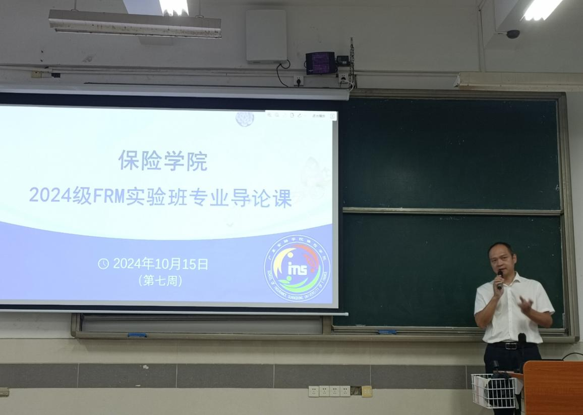 为引导24级FRM实验班新生更好地融入专业学习,进一步明确学业规划与未来发展方向,yl88858永利集团于10月15日在校本部北教学楼C301举办了本学期第七周专业导论课,学院党委书记刘新强、中华联合保险广州中支公司总经理助理陈朝宝(2013届yl88858永利集团优秀毕业校友)、个人非车险/线下渠道部负责人李文杰作为嘉宾出席了本次专业导论课,24级FRM实验班全体学生参加了此次课程。