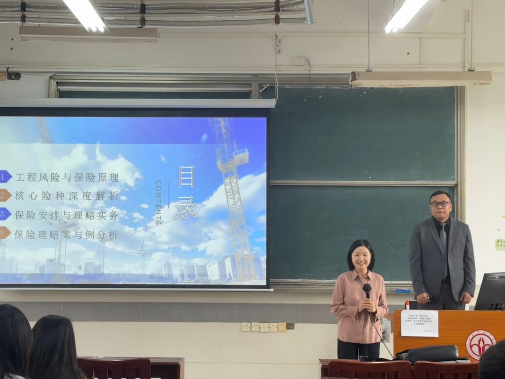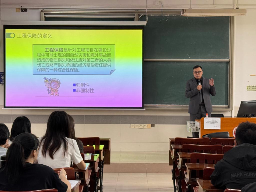 在工程保险领域,孙宏光老师对建筑工程一切险、安装工程一切险等核心险种的承保与理赔流程有着深入理解。在教学过程中,孙宏光老师将结合真实案例,如“发电机运输事故”“排洪沟边坡坍塌”等理赔争议,引导学生理解工程保险条款的适用性、理赔金额的核定原则以及保险追偿机制,提升学生解决实际问题的能力。通过解析真实的保险产品条款与详尽的工程项目概算表,他为学生们搭建了从理论知识迈向业务实践的桥梁,让大家深刻理解了保险方案如何精准响应项目风险与预算控制。