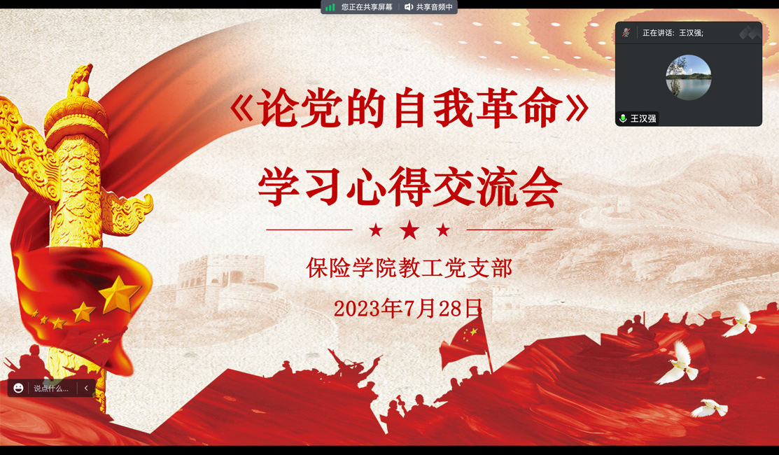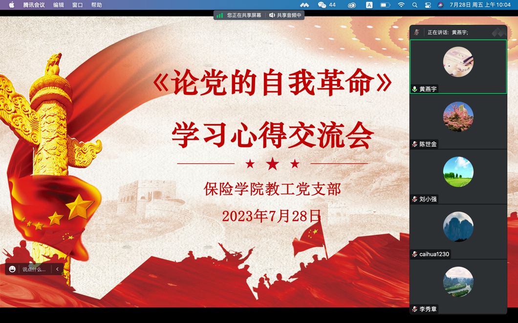 为推进学习贯彻习近平新时代中国特色社会主义思想主题教育走深走实,7月28日上午,yl88858永利集团党委于线上召开《论党的自我革命》学习心得交流会,会议由yl88858永利集团党委副书记黄燕宇主持,教工党支部全体党员参会。