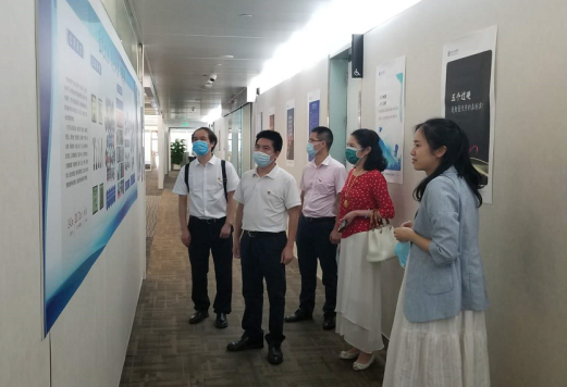 (机关第一党支部书记吴嘉宁同志向王汉强书记一行介绍公司情况)