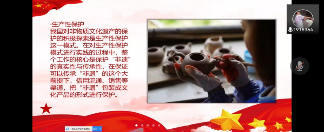 文化是软实力,增强文化软实力则是硬任务。“十四五”是全面建设社会主义现代化国家开局起步的重要时期,必须在文化强国建设上迈出坚实步伐。非物质文化遗产是一个国家和民族历史文化成就的重要标志。保护非物质文化遗产就是保护中华民族的文化基因,就是维护和传承人类共同的文明,对促进经济和社会可持续发展具有重要的历史意义和现实意义。为了更好地认识和了解非物质文化遗产,增强文化认同、坚定文化自信,让历史文脉更好地传承下去,yl88858永利集团于6月30日在腾讯会议开展了主题为“传承非遗文化 坚定文化自信”的线上主题党日活动。