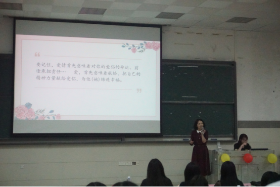 会上,李书记围绕女性、爱情及生活三个方面展开讲解,她用朴实生动的语言阐述了“女性不是弱者”和“女性更容易受到伤害”两个观点。就爱情问题,李书记与在场所有女生做了一次深刻的剖析:恋爱时要学会保护自己,并处理好学习与恋爱之间的关系;失恋时应找到正确的方法疏导情绪,防止过激行为发生;恋爱中要认识到不能依赖性作为维持爱情的因素以及偷吃禁果的危害。