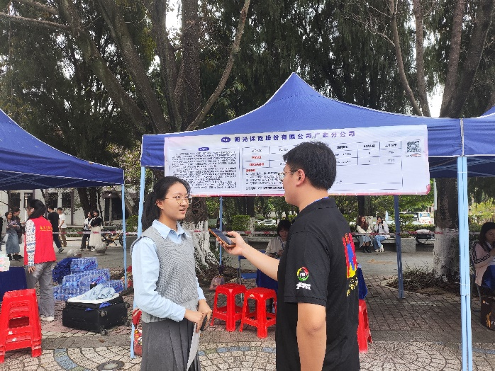 深圳国寿财险面试官介绍到,根据学生的自主选择,本院学生进入保险公司后可以通过定向培养和定岗培养从事销售岗位以及其他岗位,而了解保险的基础业务对个人提升会有很大帮助。他表示,性格阳光开朗、富有激情活力、沟通能力强的求职学生更能受到用人单位的青睐,不论是“对内跟公司同事的沟通”还是“对外跟客户的沟通”,这些特质都十分重要。同时他建议同学们在校时可以通过参加学校的社团活动来提升自己的人际交往能力,并做好清晰的职业生涯规划。