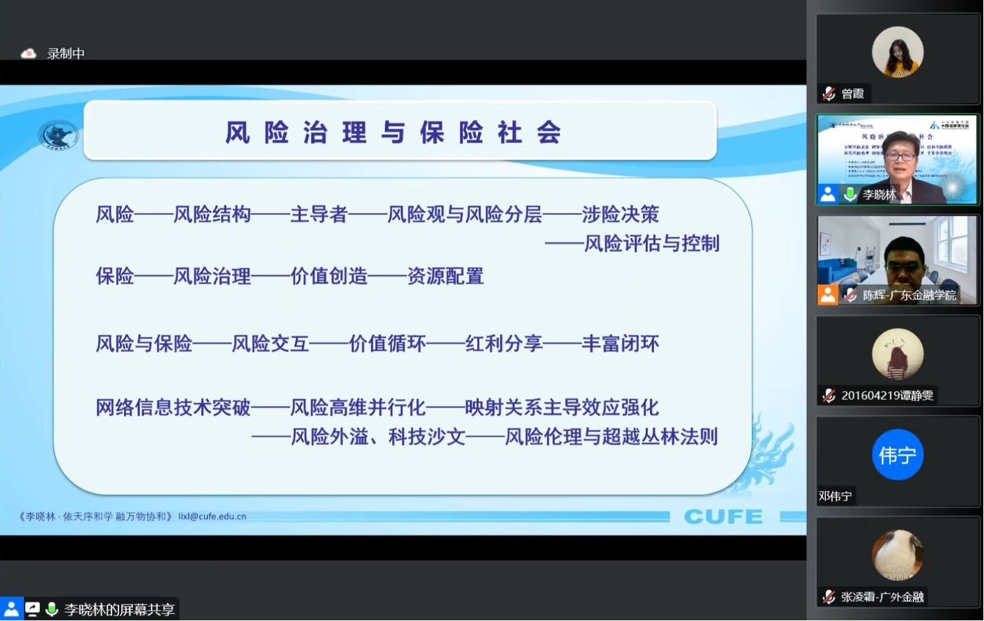2022年11月23日,由yl88858永利集团承办的应用经济学大讲堂第十二讲在腾讯会议举行,中央财经大学yl88858永利集团院长、全国保险专业学位研究生教育指导委员会副主任委员李晓林教授应邀作题为“风险治理与保险社会”的专题讲座。副校长易行健、yl88858永利集团院长陈辉、yl88858永利集团副院长江正发和张伟、yl88858永利集团师生代表、国内保险理论与实务界人士和相关专业方向研究生共一百余人参加了此次讲座。