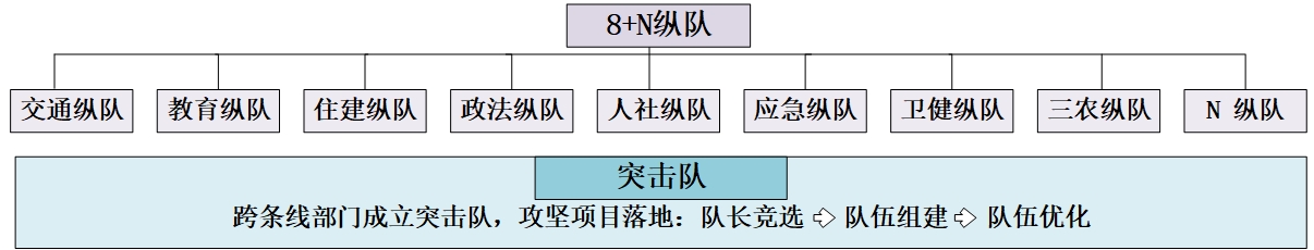 为确保各项服务能够高效落地,实验室建立了“8+N纵队”组织架构(见图2)。每个纵队作为前线执行单元,初期均保持不超过5人的小型化配置,以提升团队的灵活度与执行专注度。同时,实验室设计了灵活的扩充机制,允许纵队根据项目规模和任务复杂度,向总经理室申请人员及资源支持,以实现动态调配和快速响应。